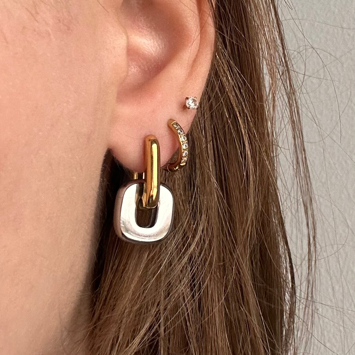 Auksas+sidabras ilgis 2.05cm plotis 1.35cm