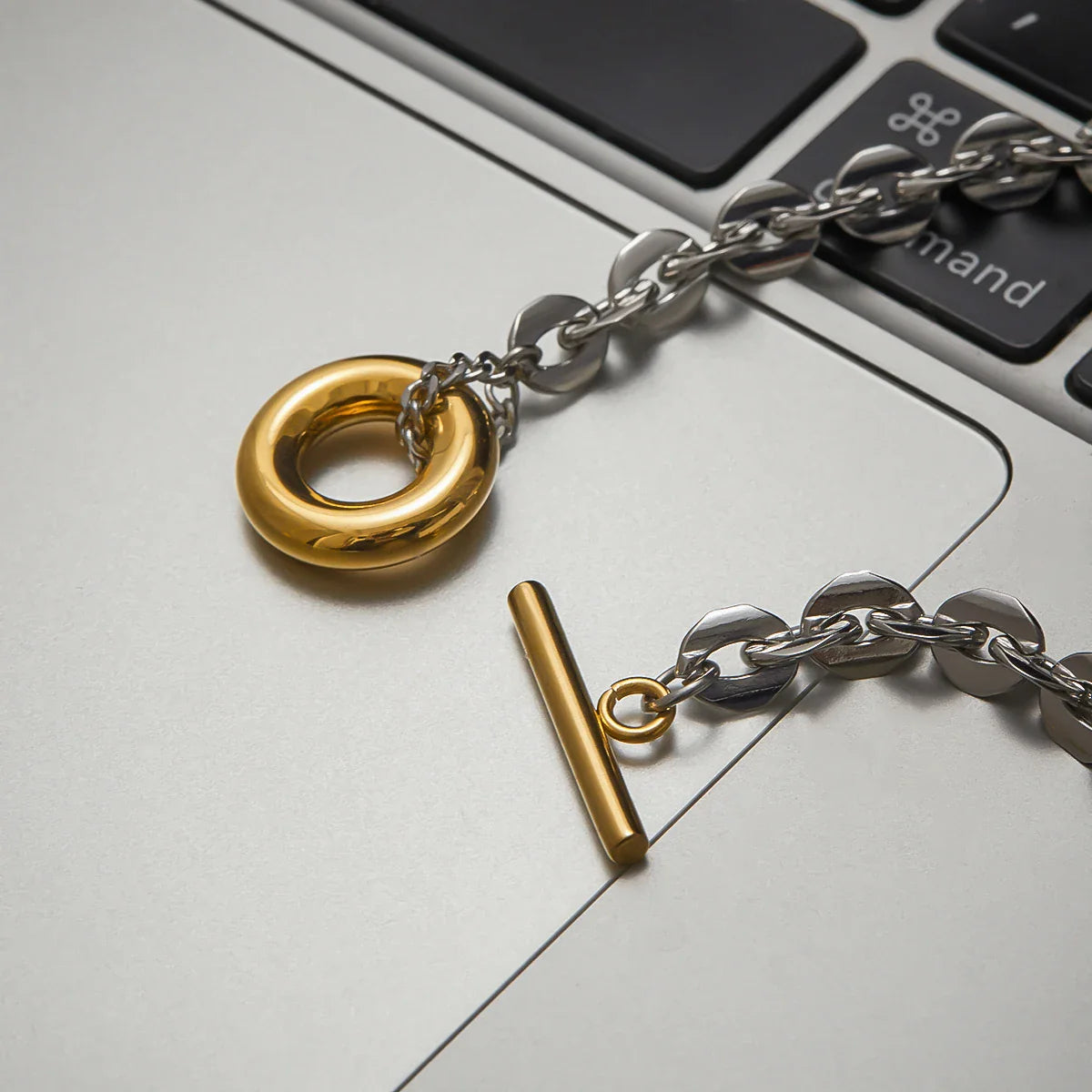 Pagamintas iš aukštos kokybės nerūdijančio plieno su 18K PVD auksu – ilgaamžis, atsparus vandeniui ir hipoalerginis.