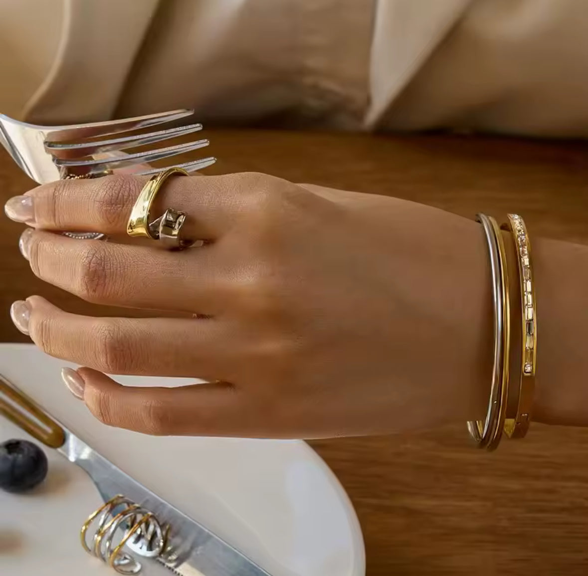 Medžiaga: Anti-alerginis nerūdijantis plienas, dengtas su 18K PVD auksu.