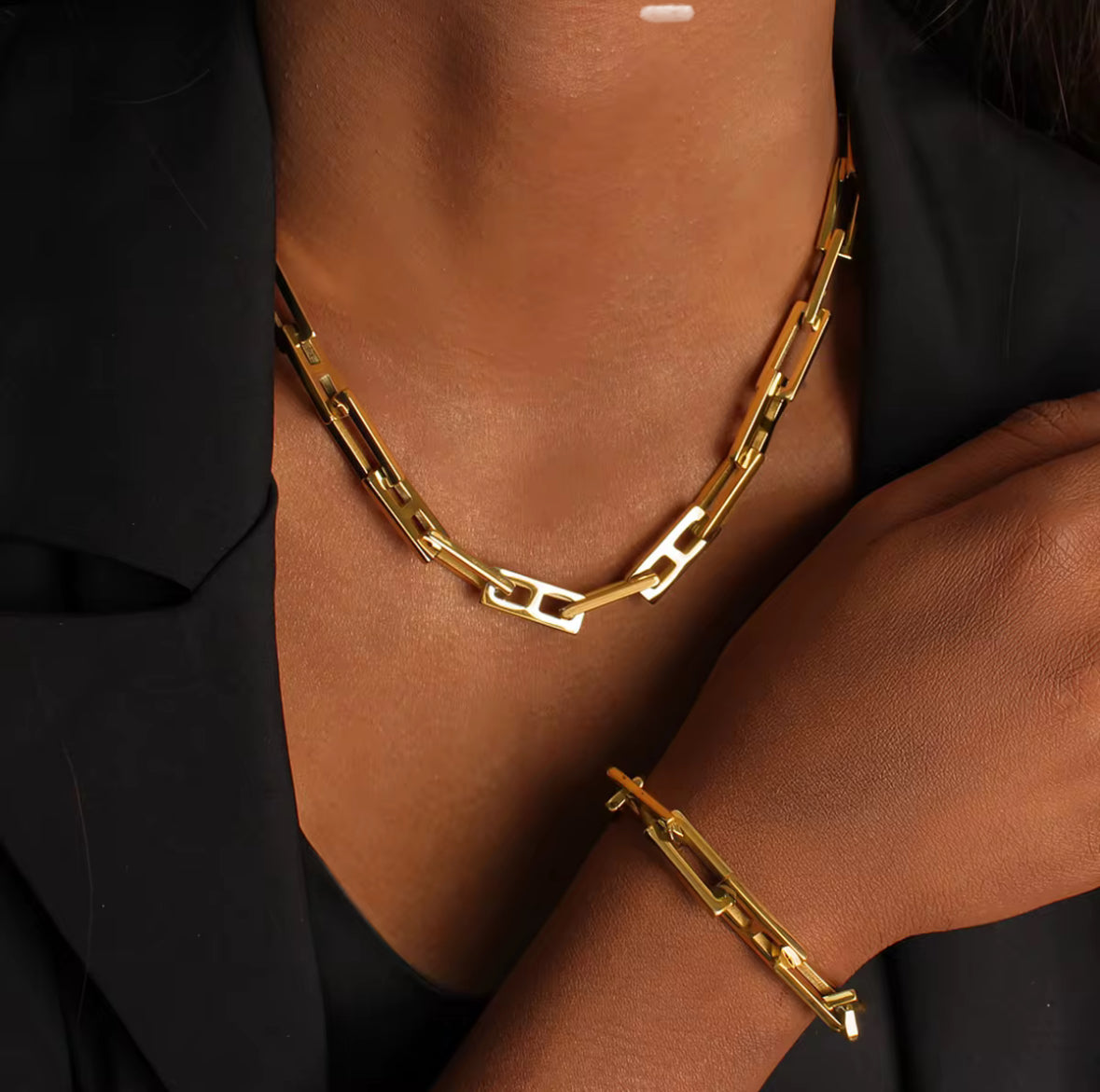 Pagamintas iš aukštos kokybės nerūdijančio plieno su 18K PVD auksu – ilgaamžis, atsparus vandeniui ir hipoalerginis.